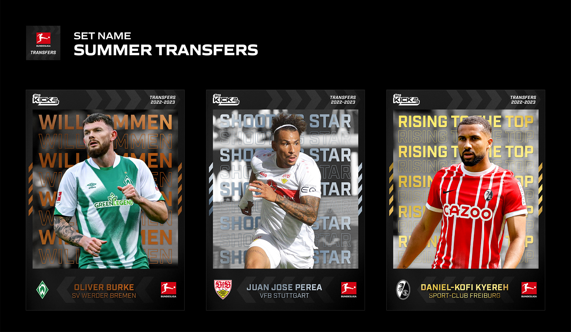 These trading cards were designed during my time at The Topps Company part of Fanatics Inc. Official licensed digital collectibles for Bundesliga, UEFA Champions League & Europa League and Major League Soccer.